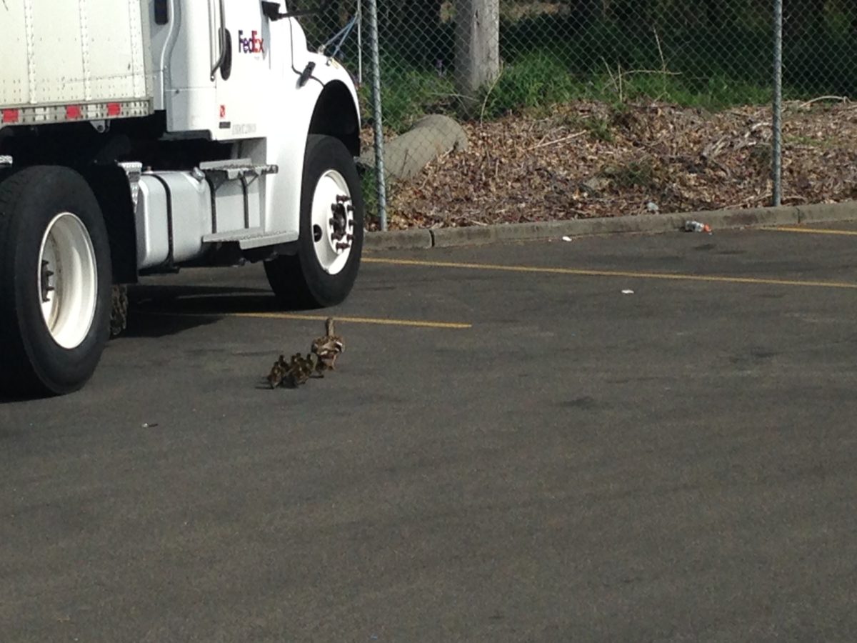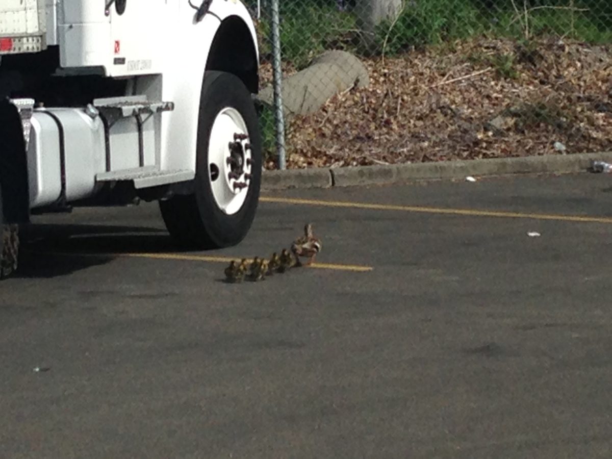 Later, while waiting on mom for another appointment, my young son and I found an entire duck-filled park hiding behind the Fred Meyer that I had never seen before in all the years of visiting that parking lot. Apparently that was where the van-dodging mother duck was headed.