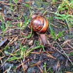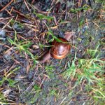 Here is one of my most recent gold coins. I almost stepped on him but instead jumped back at his shape and swirling colors. I don’t believe I’ve ever seen a snail like this before out of doors. He begged a picture the second I managed to avoid squashing him flat.