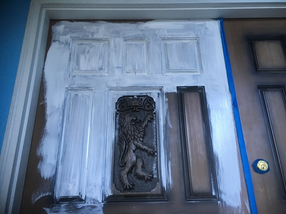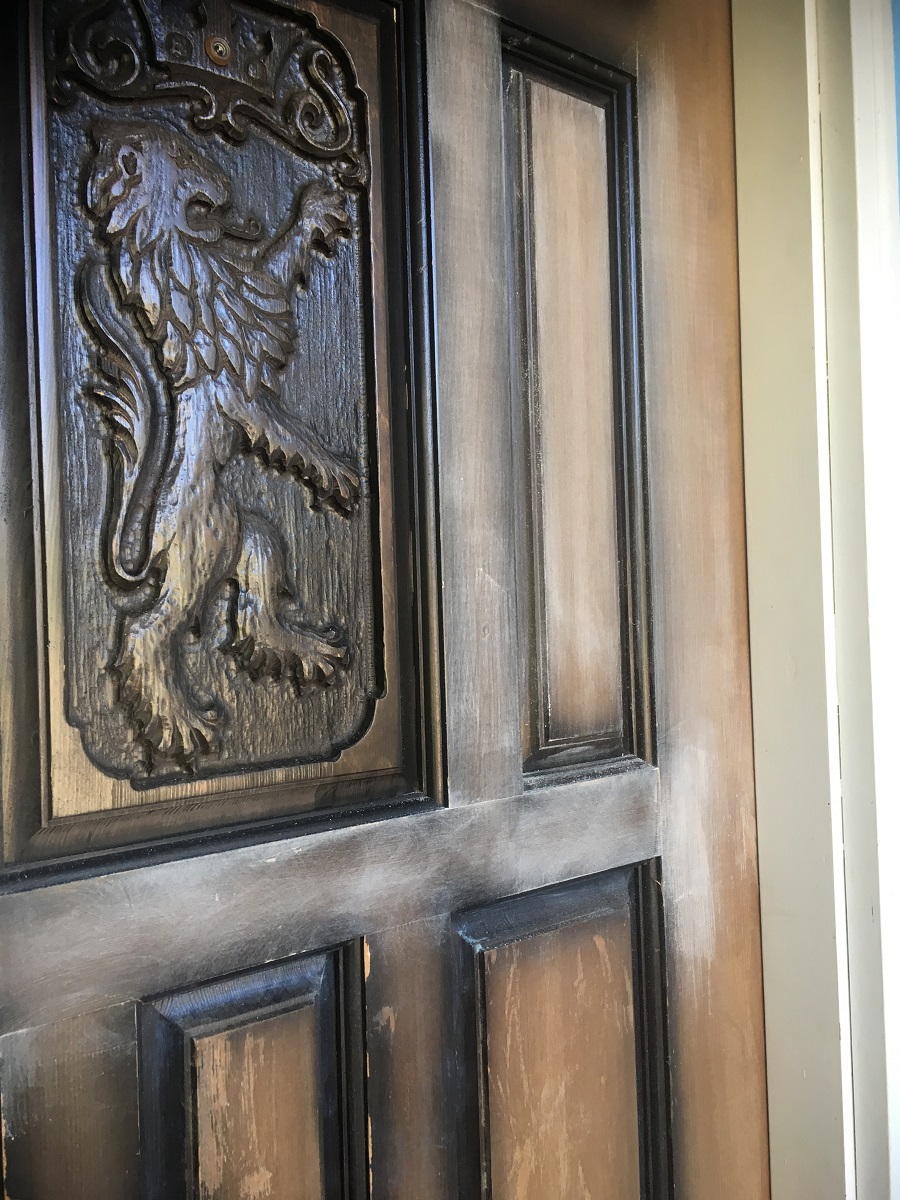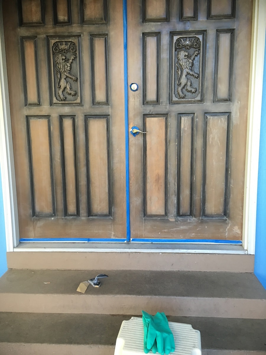 This will be a short post. The door is done! Done! (I ache to replace the hardware with silver but have no more oomph for that sort of insanity.)