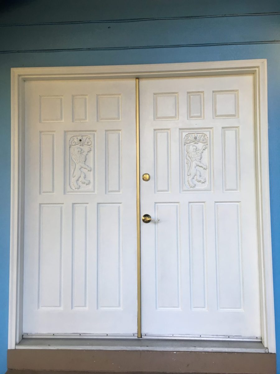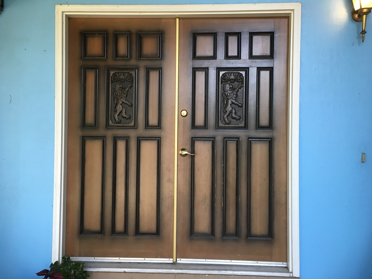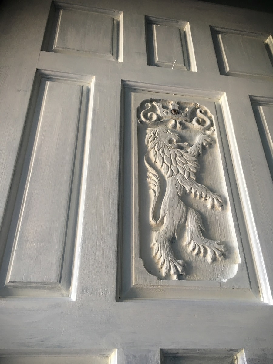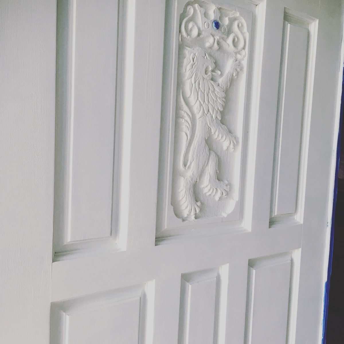 This will be a short post. The door is done! Done! (I ache to replace the hardware with silver but have no more oomph for that sort of insanity.)