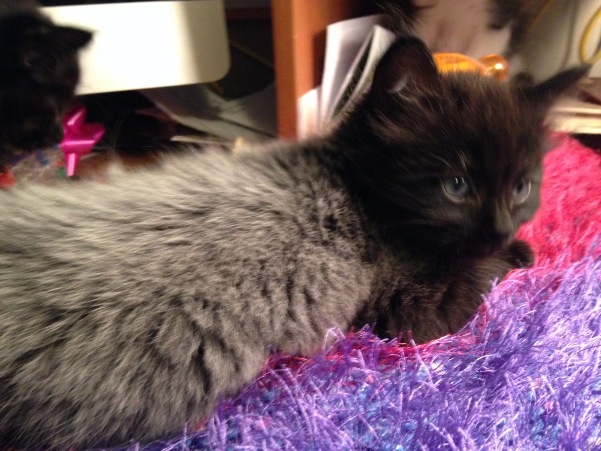 Ash plays chase, fetches the ball (but won’t bring it back because that would be undignified), and once refused to leave the shower even after the water started running because, again, he likes to hold his ground. Most of the time we know he is plotting, and I’m certain we only have a bird and squirrel population in the tri-state area because we keep our cats indoors. (You can see why we named him Ash if you look at the photo at the top of this post. His ash-grey deepened into the all black Toothless the Dragon color of today.)
