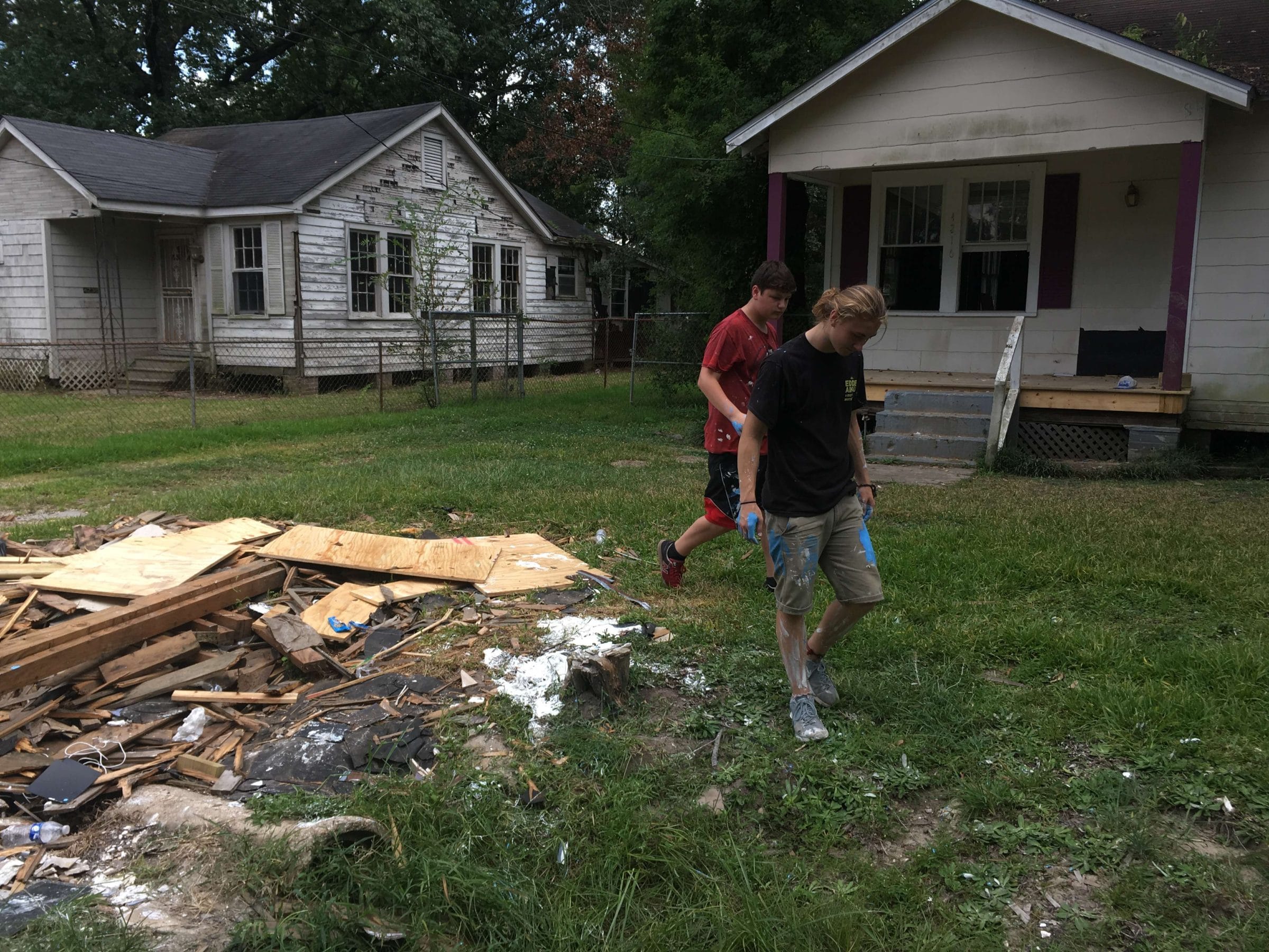 Alex and Jaydon did not want to do this job. I didn’t blame them. It was so hot and humid, I found it hard to walk half a block down to a neighbor’s house earlier. I learned on this trip that humidity makes the body’s cooling system less efficient because sweat doesn’t evaporate. The whole group felt the truth of this all week and especially that day caulking in a house without air conditioning before facing the sun and The Pile outside.
